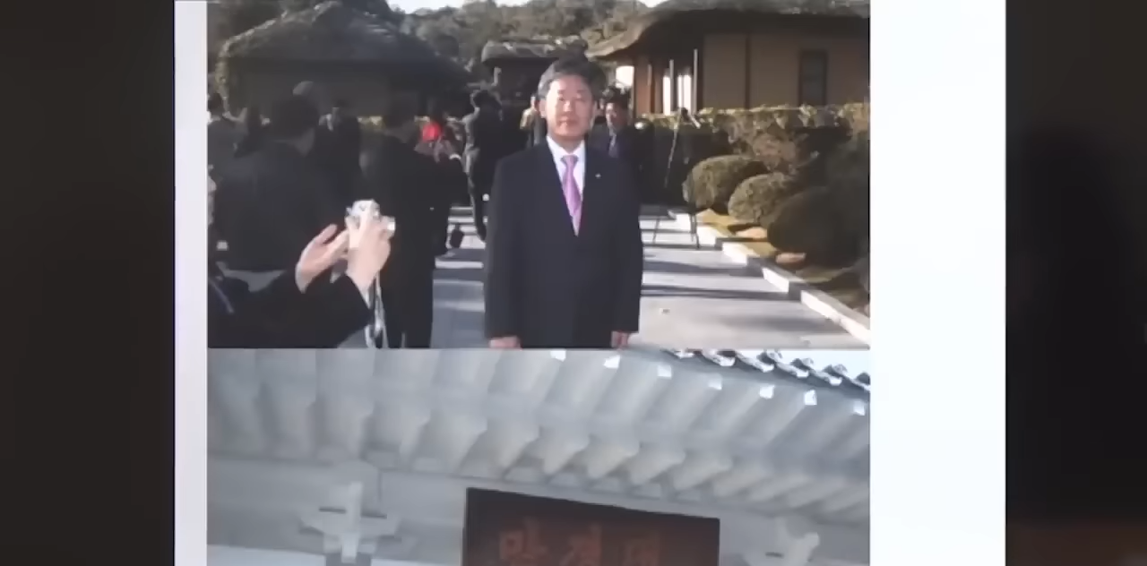 그는 과거 비밀리에 북한에 다녀온 증거, 만경대앞에서 사진까지 찍었다.